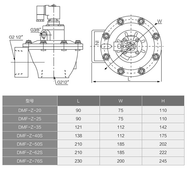 DMF電磁脈沖閥外形結(jié)構(gòu)尺寸