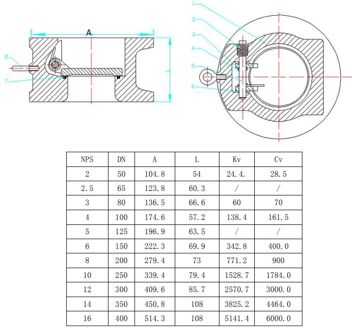 鑄鐵單板對夾式止回閥主要外形結(jié)構(gòu)尺寸