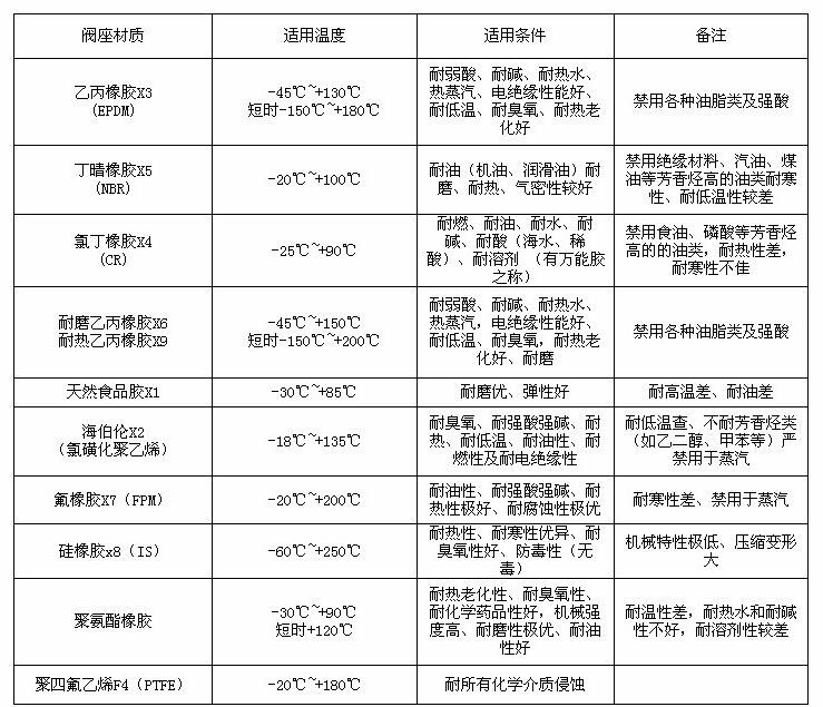 各種軟密封蝶閥閥座材質(zhì)列表: