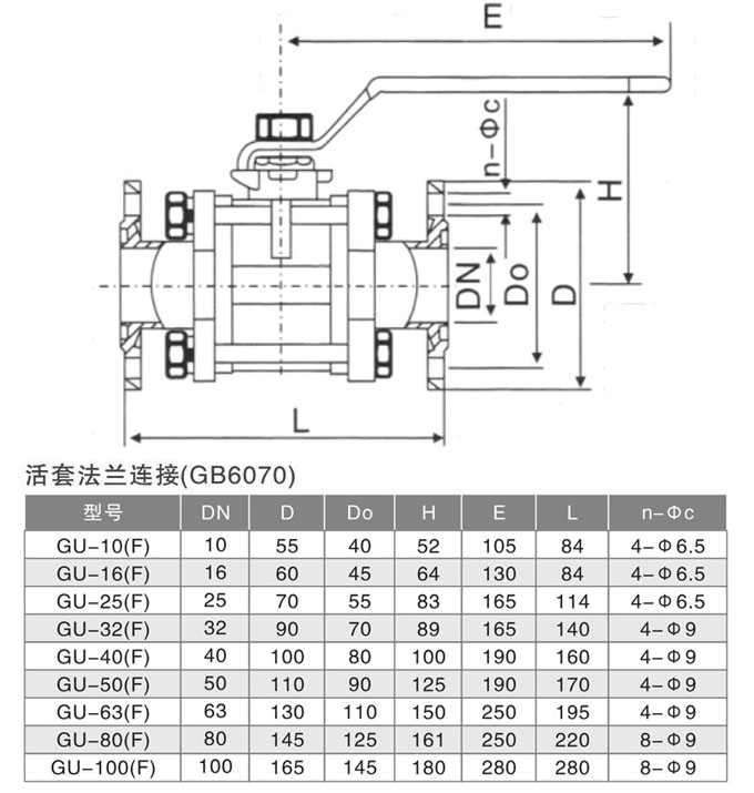 五、GU手動(dòng)高真空球閥外形結(jié)構(gòu)尺寸: