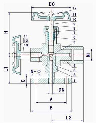 J49H壓力表法蘭針型閥外形結(jié)構(gòu)尺寸