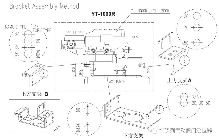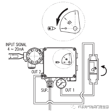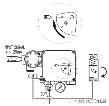 (1)確認(rèn)執(zhí)行機(jī)構(gòu)和定位器的動(dòng)作方式。YT-1000 系列定位器是隨著輸入信號(hào)增加出口1的壓力增加 按這個(gè)原理要正確連接氣路。并且根據(jù)這個(gè)原理 正作用執(zhí)行機(jī)構(gòu)熾程調(diào)節(jié)件要安裝在正作用位罰,反作用的執(zhí)行機(jī)構(gòu)址程調(diào)節(jié)件要安裝在反作用位貍。