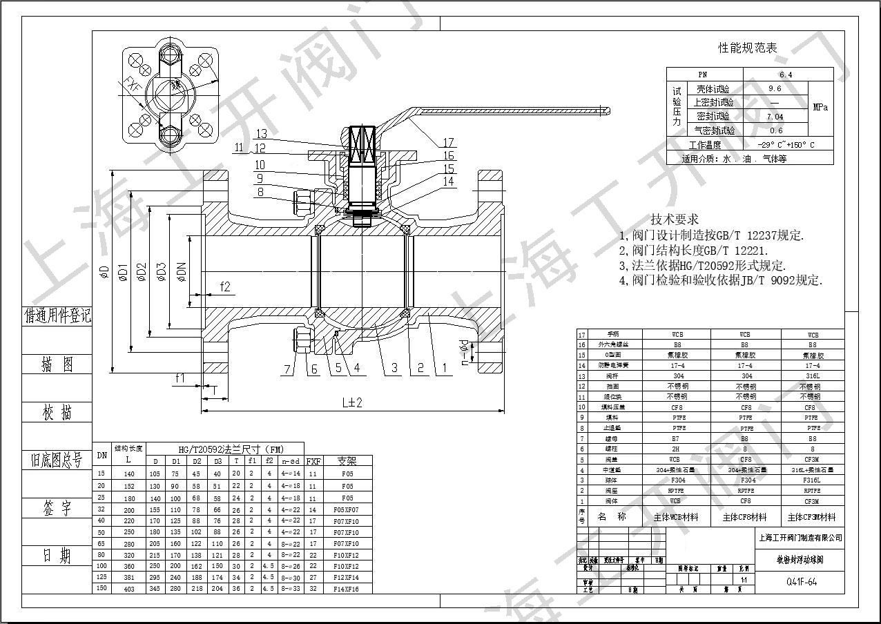 手動球閥Q41F-64化工部標準-碳鋼不銹鋼材質(zhì)圖紙