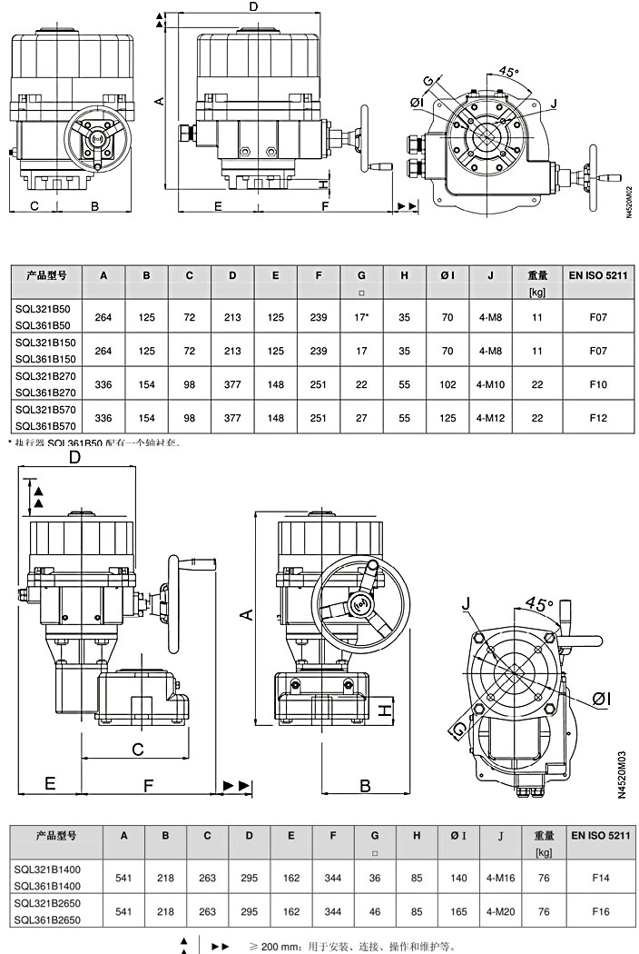 9、執(zhí)行器無需維護(hù),此類執(zhí)行器具有可逆異步電機(jī),可通過齒輪系驅(qū)動主軸,然后由主軸帶動蝶閥的方軸。型號SQL321B25手輪主軸上安裝了彈簧,因此必須保持手輪推入才能手動操作。對于其他型號,手輪則直接連接到蝸桿軸上。