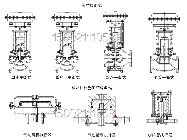 調壓閥主要有檢測執(zhí)行機構、調節(jié)閥、冷凝器(蒸氣時)與閥后(或閥前)取壓管等四部分組成,其結構見下圖。