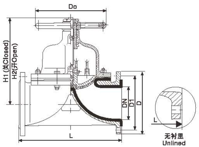 G41J手動(dòng)襯膠隔膜閥結(jié)構(gòu)尺寸