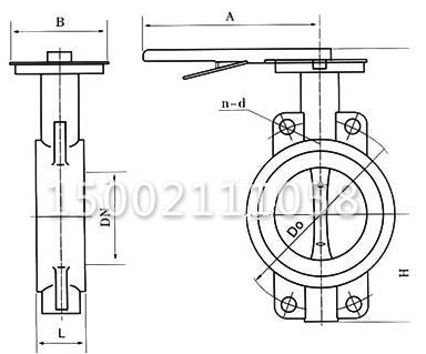 D71X-16P對夾式不銹鋼蝶閥主要零外形及連接尺寸