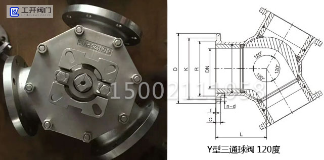 120度Y型三通球閥是一種閥體三個(gè)管口的流體通道之間被設(shè)計(jì)成互成120°夾角,球體與閥桿為一體結(jié)構(gòu),球體中有兩個(gè)成120°角并通過(guò)球中心點(diǎn)的通孔,這二個(gè)通孔的端口(球體端口)與閥體上的管口對(duì)應(yīng),并隨著球體在一百二十度之間的轉(zhuǎn)動(dòng)實(shí)現(xiàn)進(jìn)口與任意出口導(dǎo)通或關(guān)閉,從而達(dá)到對(duì)兩種不同流向切換的閥門。本產(chǎn)品采用Y形結(jié)構(gòu)設(shè)計(jì),減緩了流體沖進(jìn)球腔內(nèi)的流動(dòng)速度,以防止顆粒狀物料受到損壞。