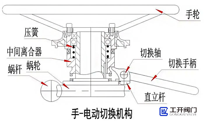 當電動執(zhí)行器需要手動切換時,首先需要將手動機構(gòu)部分調(diào)整到正確的位置。接著,通過操作手動機構(gòu),將離合器離合或者分離,達到切換的目的。在此過程中,齒輪會將力量從手動機構(gòu)傳遞到離合器和傳動部分之間,以實現(xiàn)機械連接或者斷開,從而實現(xiàn)手動操作電動執(zhí)行器的目的。