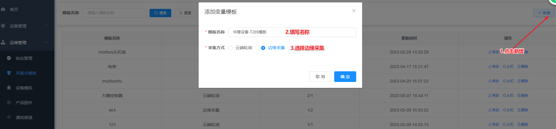 設(shè)置好子設(shè)備模仿真擬器后,配置一下云平臺(tái)。先創(chuàng)建一個(gè)采集點(diǎn)模塊