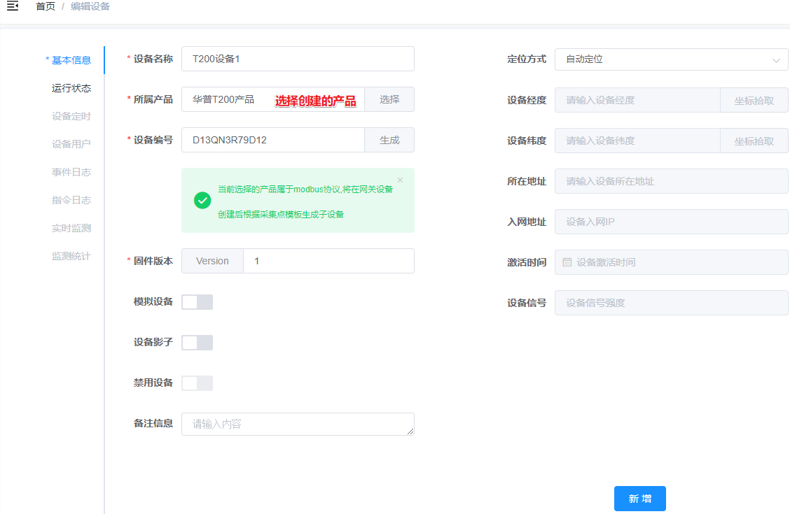 Modbus slave模擬子設(shè)備接入DTU設(shè)備時(shí)平臺(tái)配置